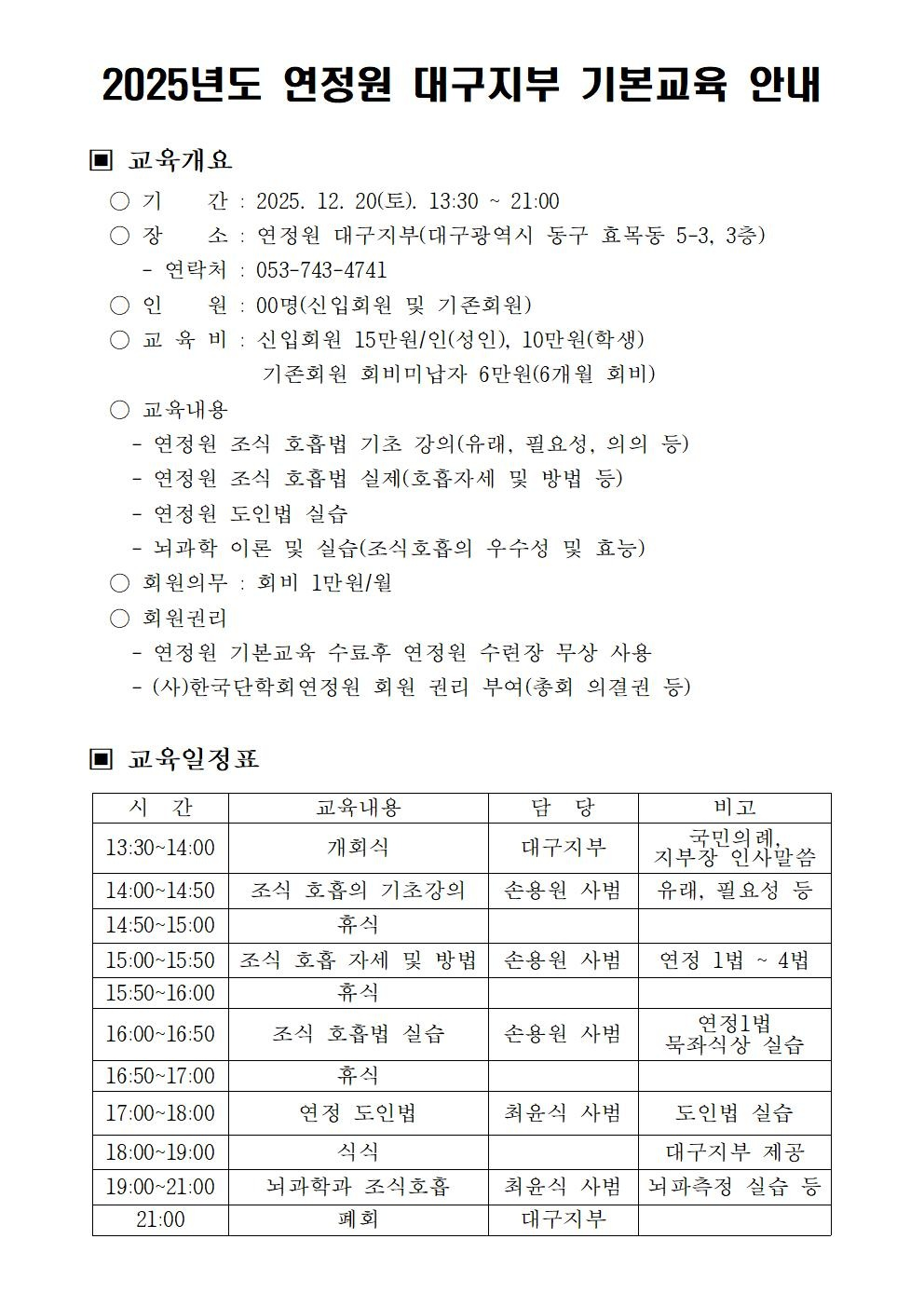 대구지부 신입교육 안내